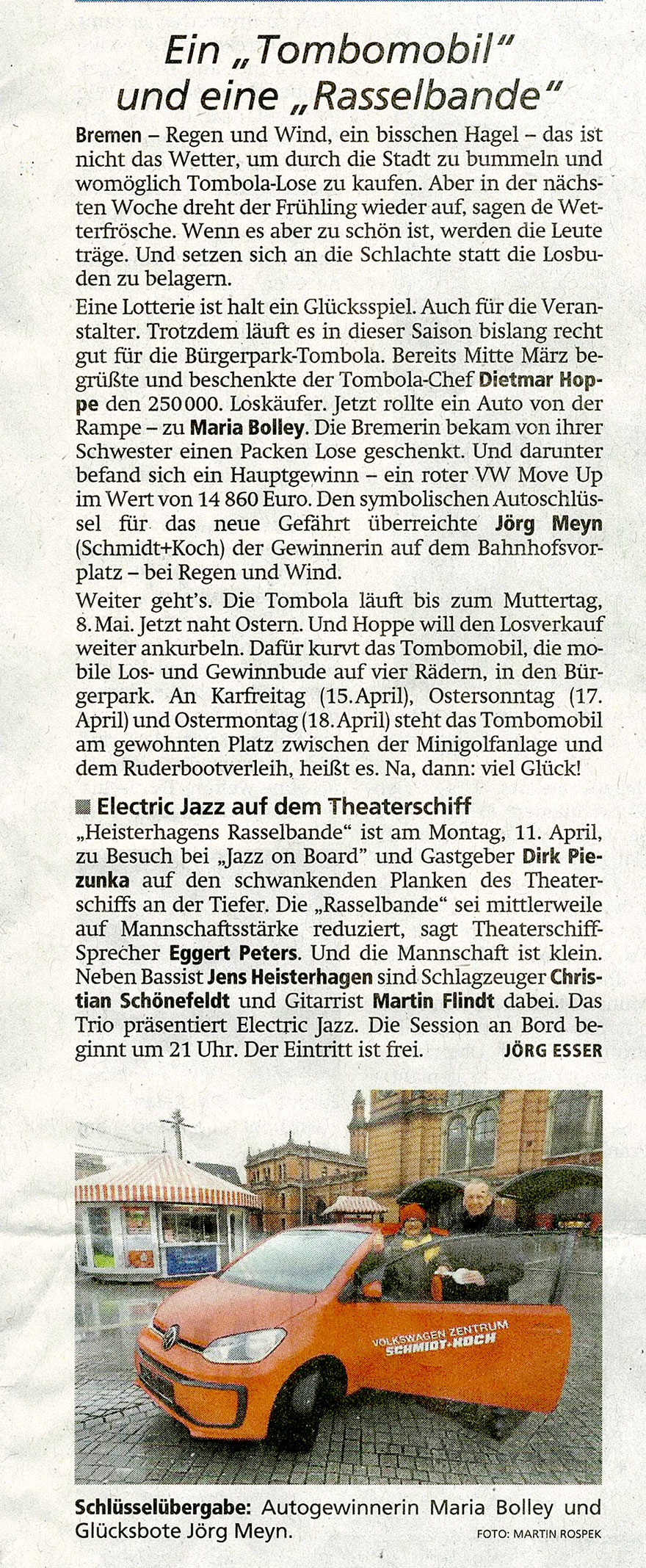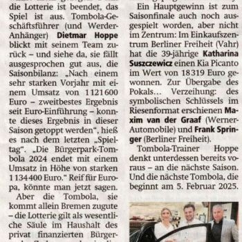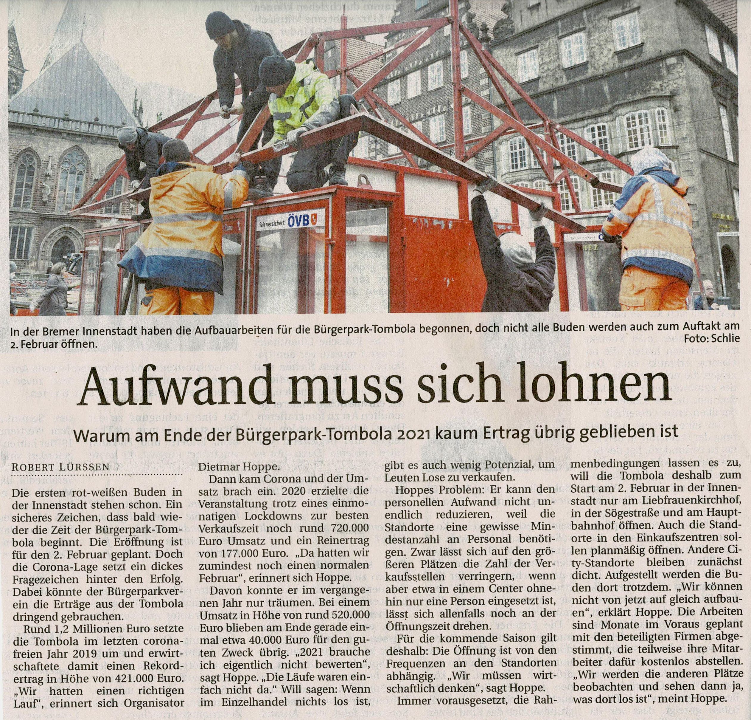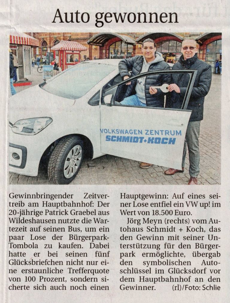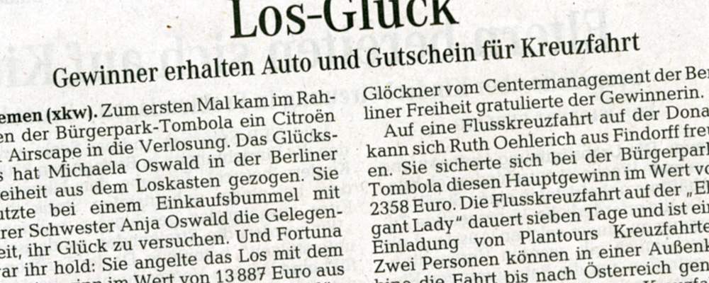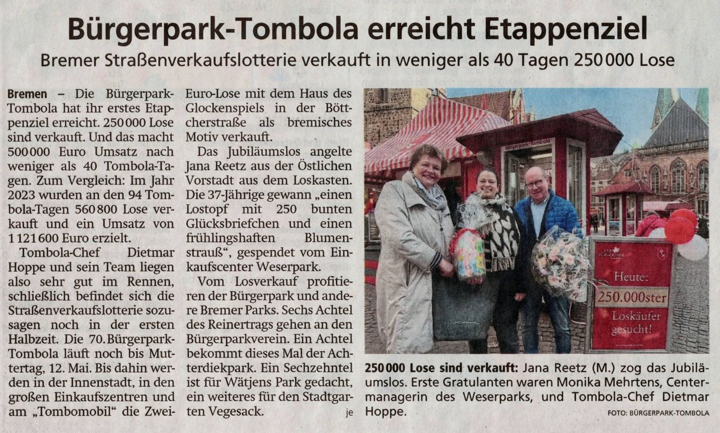 Sie möchten gerne für die Bürgerpark-Tombola zugunsten des Bremer Bürgerparks und vielen anderen Bremer Parks und Projekten hochwertige Gewinne spenden? Rufen Sie uns an, wir freuen uns darauf Ihnen die Vorteile einer Spende für diese gute Sache zu erläutern: 0421 323666.