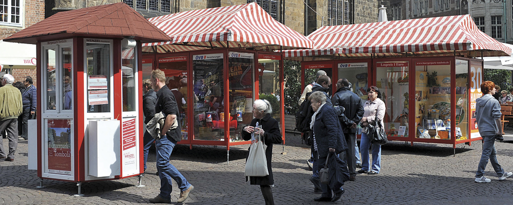Für die teilnehmenden Unternehmen, die der Bürgerpark-Tombola Gewinne spenden, gibt es für den Zeitraum von 3 Monaten die Möglichkeit sich der breiten Öffentlichkeit zu präsentieren. Über 150 individuell gestaltbare und beleuchtete Präsentationsvitrinen auf den frequentiertesten Flächen der Stadt stehen dafür zur Verfügung.
