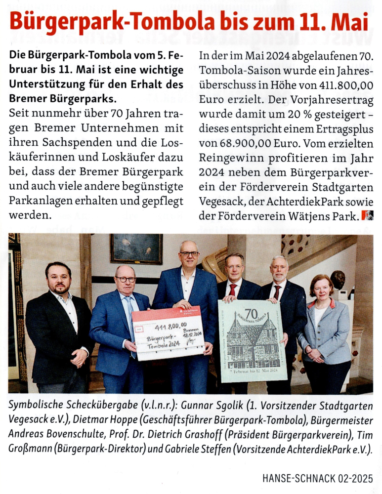 | Gerne können Sie auch vorab unsere aktuelle Broschüre Bürgerpark-Tombola 2025 als PDF herunterladen. Hier finden Sie zusätzliche Information für Ihr Engagement. |