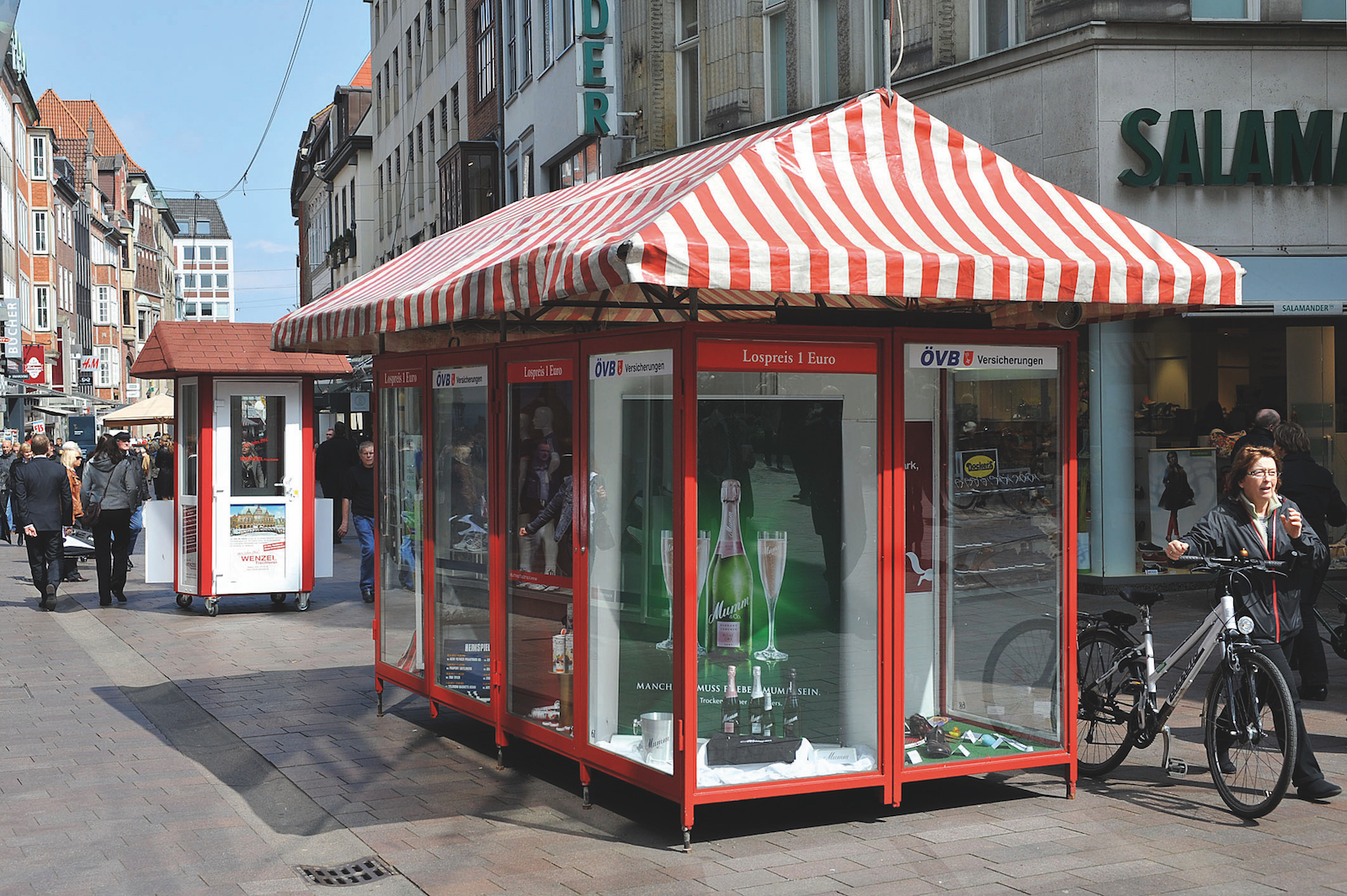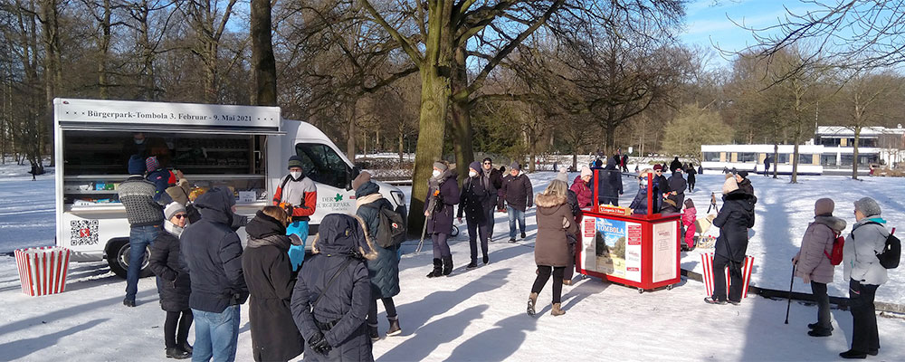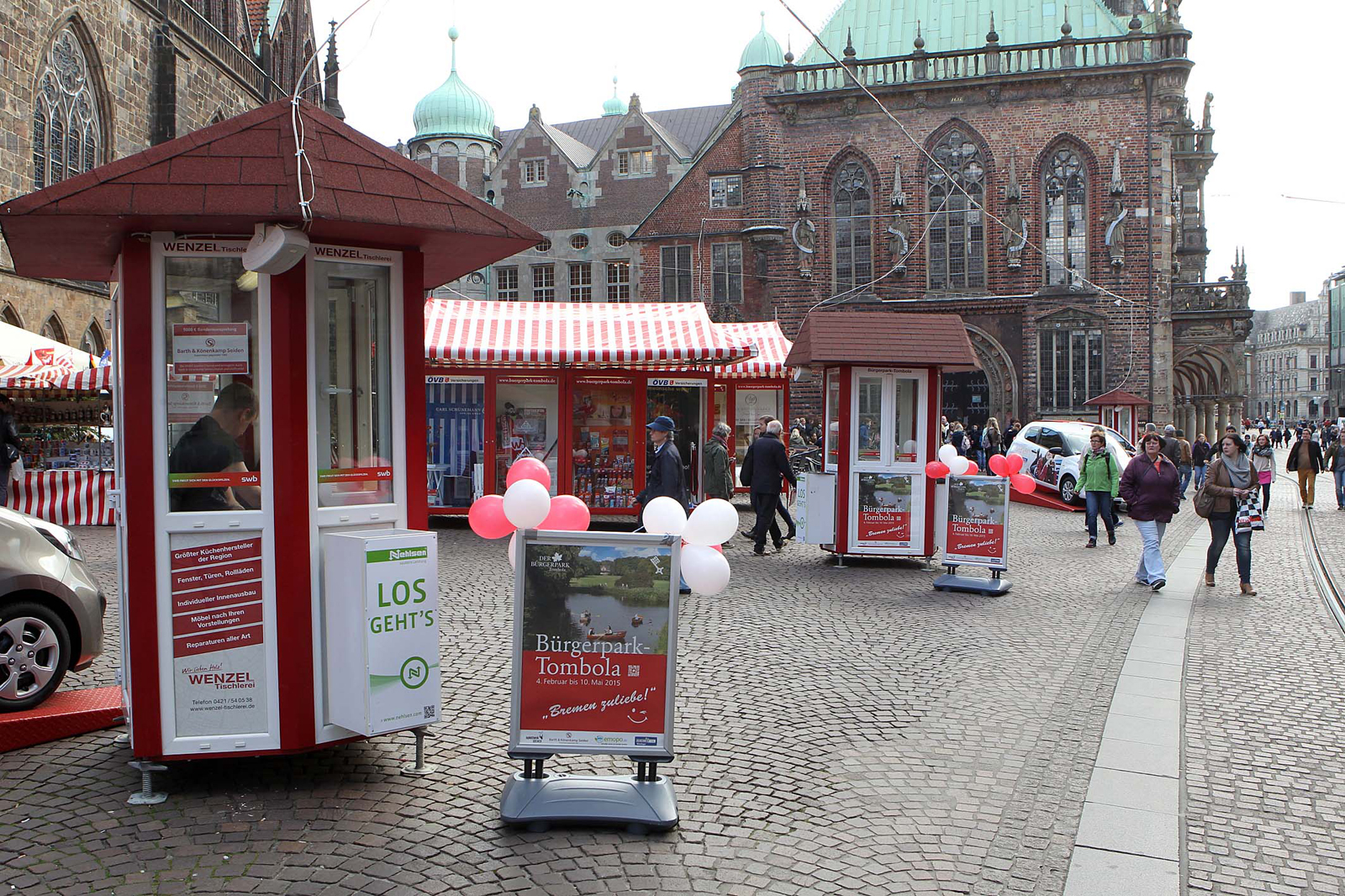 Für die teilnehmenden Unternehmen, die der Bürgerpark-Tombola Gewinne spenden, gibt es für den Zeitraum von 3 Monaten die Möglichkeit sich der breiten Öffentlichkeit zu präsentieren. Über 150 individuell gestaltbare und beleuchtete Präsentationsvitrinen auf den frequentiertesten Flächen der Stadt stehen dafür zur Verfügung.