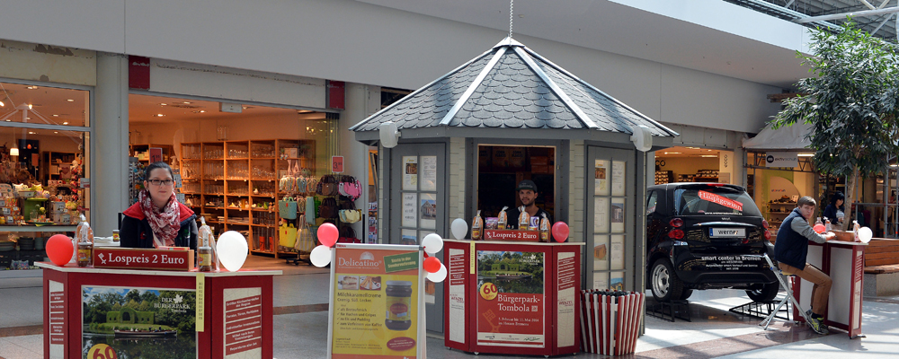 Auch in allen größeren Einkaufszentren in Bremen ist die Bürgerpark-Tombola präsent. Mit eigenen Lotterien, den damit verbundenen Hauptgewinnen und speziellen Sondertagen sind sie ein spannendes Erlebnis für die Besucher.